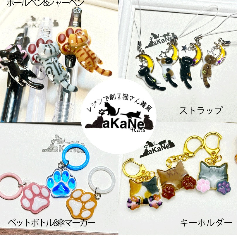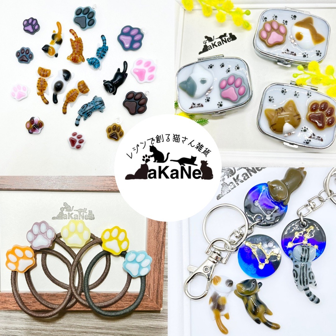 2019年から、クラフトレジンで猫さんモチーフのキーホルダーやアクセサリーなどの雑貨を作成しています。