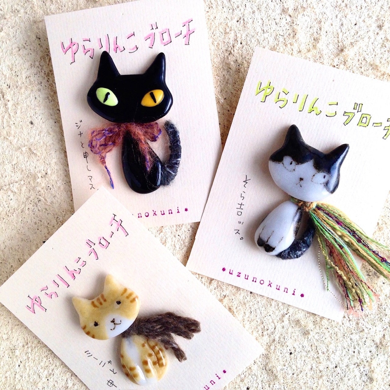 ほっこり ワクワク ウキウキウ☆ *ウズノクニ*デス。コンニチハ^_^。 ガラスや陶で、アロマ雑貨や一輪挿し、ブローチなど、 ほっこりなモノをつくっています。 *ぴょっこり葉っぱの小さなアロマストーン *にゃんこガラスのアロマプレート *にゃんこガラスの一輪挿し *ゆらりんこにゃんこブローチ など。 気持ちがマル。になるモノつくりたい♪